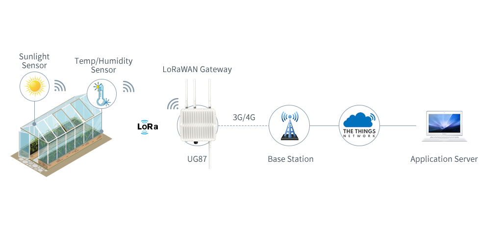 Paso 1: La puerta de enlace UG67 LoRaWAN® se instala en la parte superior de un edificio cercano con una gran señal;