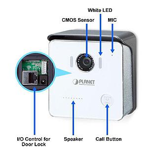720P POE Door Phone, 720P CMOS Sensor, wide 112 degrees view angle, H.264/MJPEG, SIP 2.0, PoE, White LED, DI/DO, Internal microphone, Hardware AEC, ONVIF, PLANET Easy-DDNS, Cloud Bell App