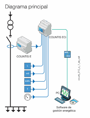 Los COUNTIS ECix son concentradores de impulsos multiservicio que se comunican a través de un enlace RS485 en el protocolo MODBUS.Recogen y almacenan los impulsos procedentes de los contadores de agua, gas, aire comprimido y electricidad o, en el caso del dispositivo COUNTIS ECi3, gestionan la información de los sensores analógicos (por ejemplo, la luminosidad, la temperatura, el viento, etc.). Todos los datos, es decir, la mediciones totales y parciales y las curvas de potencia (para todos los TOR y las entradas analógicas), se pueden centralizar a través del enlace del protocolo RS485 MODBUS.