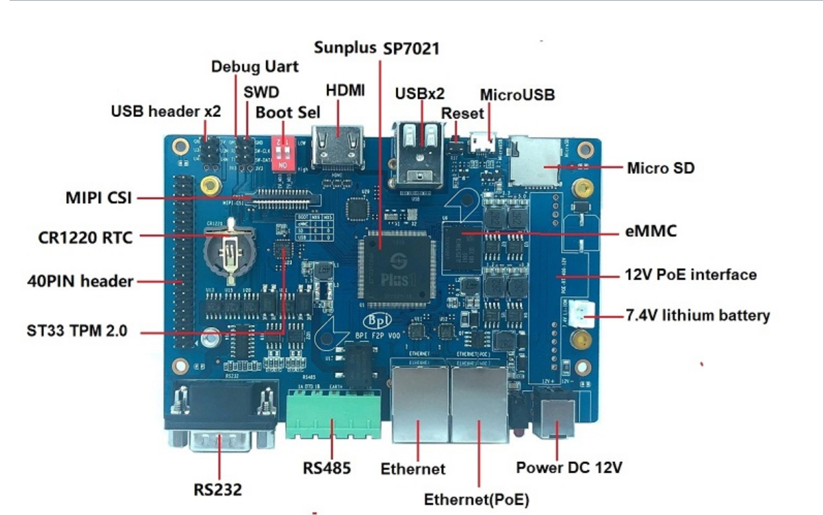 | GPIO | 40-PIN: PWM,GPIO,UART,I²C bus,I²S bus,SPI bus,+3.3v,+5v,ground. CAN bus |