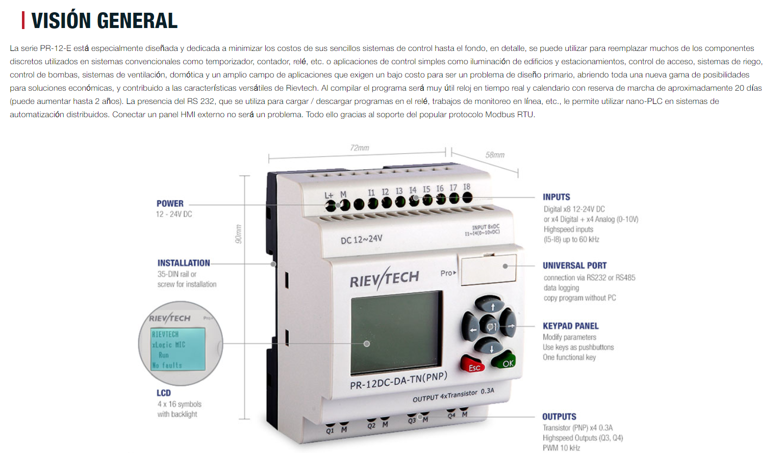 | Categoría del Producto | Automatización / Controladores Lógicos PLC / PLC Serie PR-12 |
