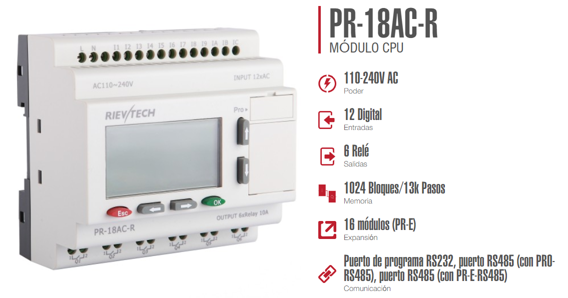 | Categoría del Producto | Automatización / Controladores Lógicos PLC / PLC Serie PR-18 |